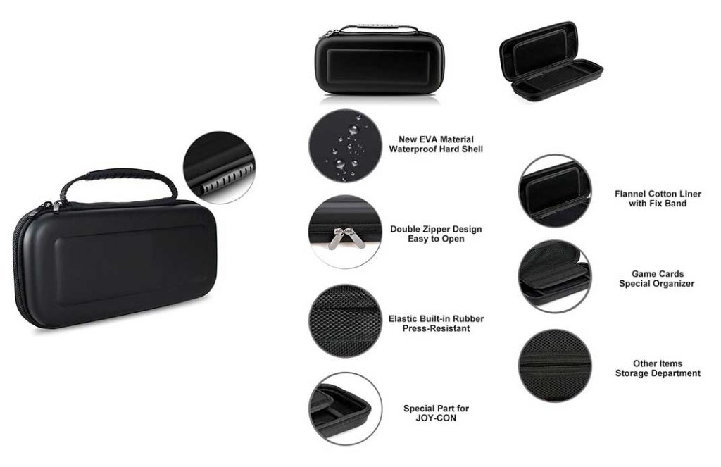 Compartimentos diseñados para guardar joysticks, juegos, cargador y accesorios sin apretarlos ni dañarlos.