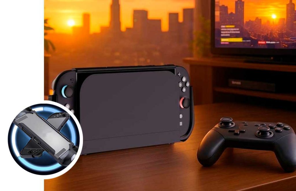 Kit de Protección Completo para Nintendo Switch 2 Funda + 1 Vidrio Templado Protector de Pantalla + 6 Grips. Diseño compatible con el dock de carga, sin necesidad de retirar la carcasa